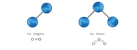 El ozono (O3) es una sustancia cuya molécula está compuesta por tres átomos de oxígeno, formada al disociarse los dos átomos que componen el gas de oxígeno. Cada átomo de oxígeno liberado se une a otra molécula de oxígeno gaseoso (O2), formando moléculas de ozono (O3).